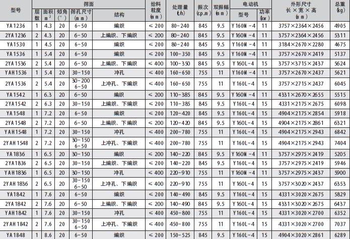 YA型圓振動篩運(yùn)點軌跡為圓,可廣泛應(yīng)用于選煤選礦、砂石、建材、煤炭等行業(yè)作為分級物料的通用設(shè)備。YA型圓振動篩結(jié)構(gòu)類型